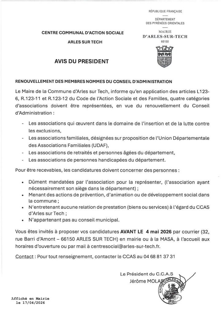CCAS – renouvellement des membre du Conseil d’Administration / Actualités / Par Marlène Marcé Bulletin Candidature CCAS ARLES-SUR-TECH